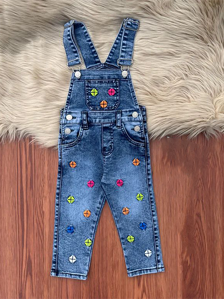 Multicolor Magic: Girl’s Blue Dungaree Overall – Stretch Comfort