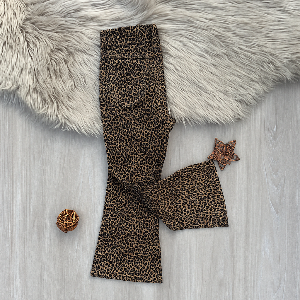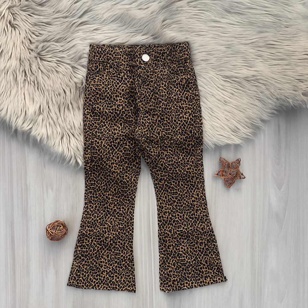 Girls’ Leopard Print Flared Cotton Twill Pants – Stretch Fit