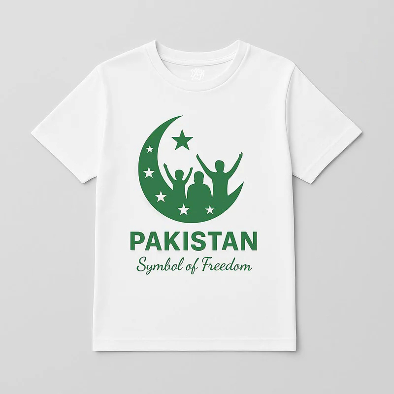 Celebrate the spirit of patriotism with the Kids White Pakistan Independence Day T-Shirt – Symbol of Freedom. Perfect for August 14th celebrations, this t-shirt proudly displays love for the homeland in a simple yet meaningful design.Crafted from soft, breathable cotton, it ensures all-day comfort for active kids while showcasing national pride. The crisp white base is complemented by vibrant green accents or prints, featuring iconic symbols like the crescent and star, Pakistan’s flag, or patriotic slogans that inspire unity and pride.