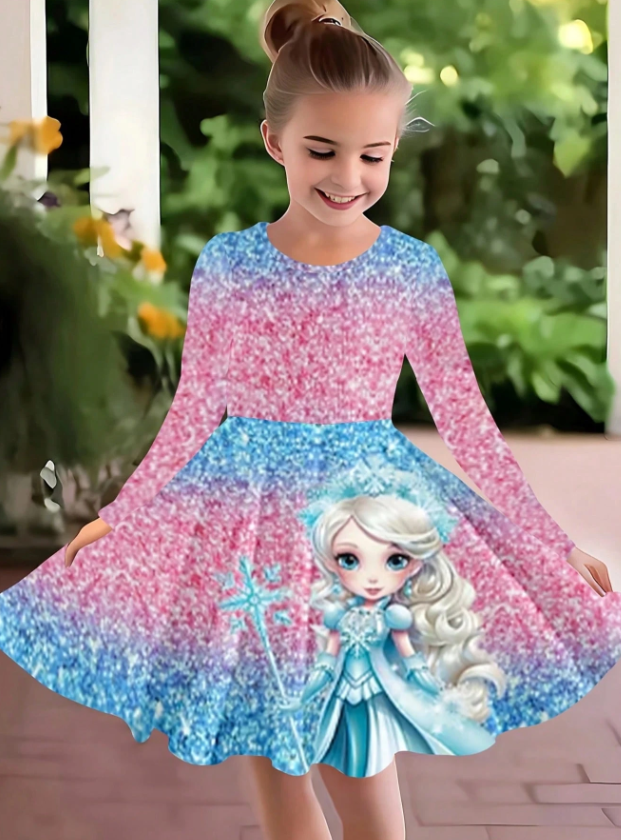 Long-Sleeve Casual Dress with 3D Unicorn Print, Comfortable Sporty Gift for Girls, Suitable for Spring and Autumn