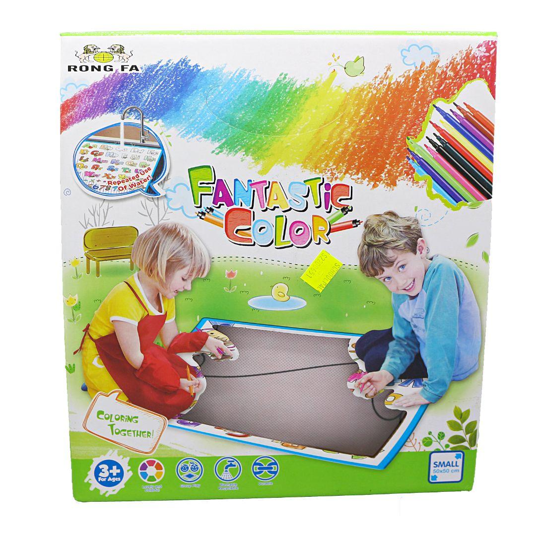 New Washable Fantastic Coloring Matt for kids with markers and an apron. There is a scene on the mat kids will use the water marker.